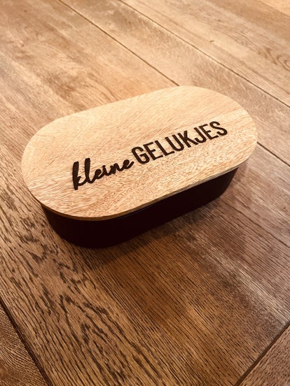 - houten deksel met tekst