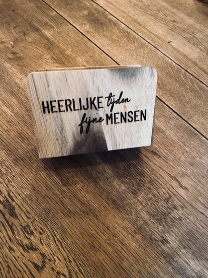 Houten servettenhouder met tekst